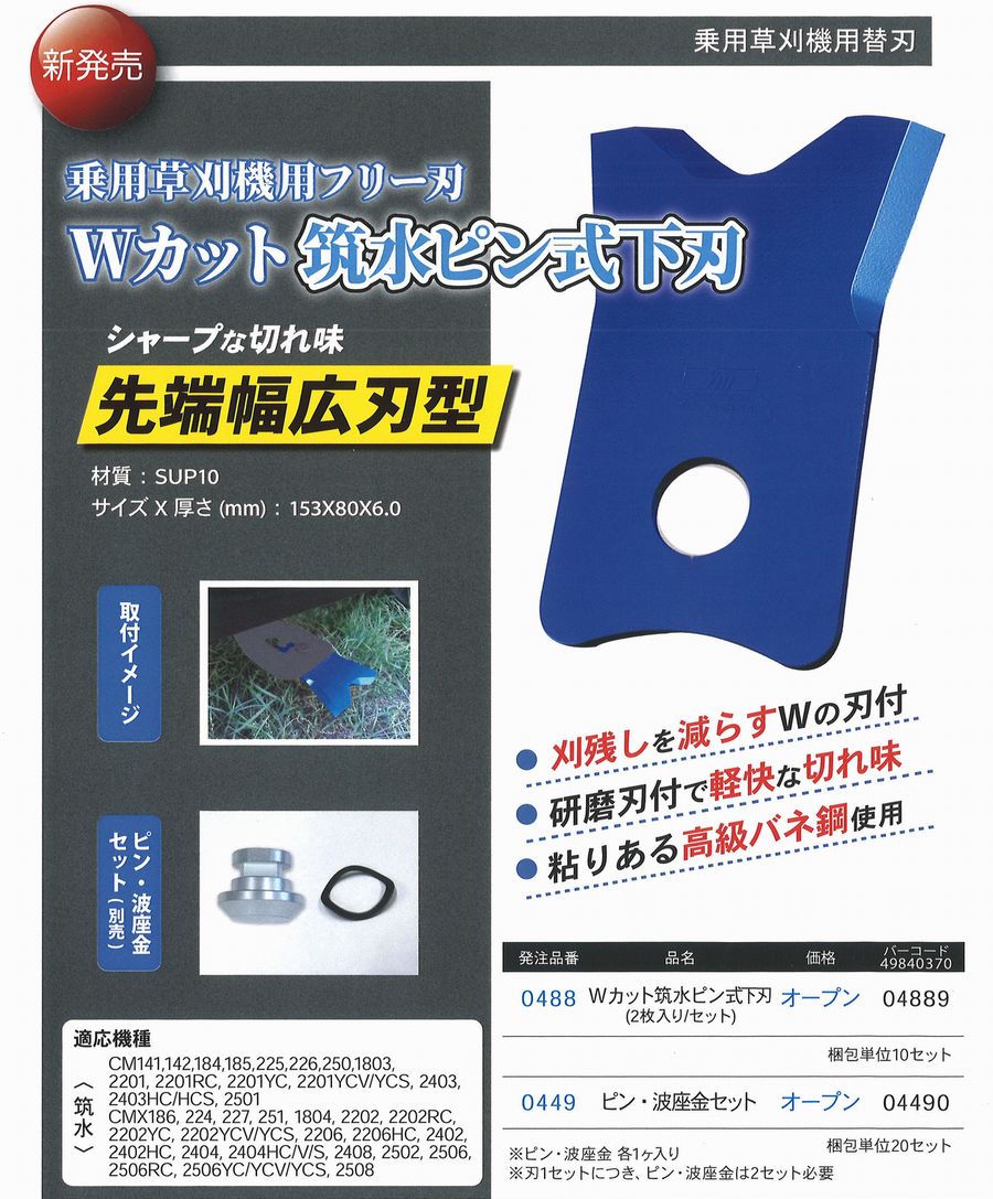 - 適合型式 : 筑水キャニコムの乗用草刈機、CMX2506、CMX2502、CMX2408、CMX2404、CMX2402、CMX2206、CMX2202、CMX1804、CMX251、CMX227、CMX224、CMX186、CM2501、CM2207、CM2201、CM1803、CM250、CM226、CM225、CM185、CM184に適合します。