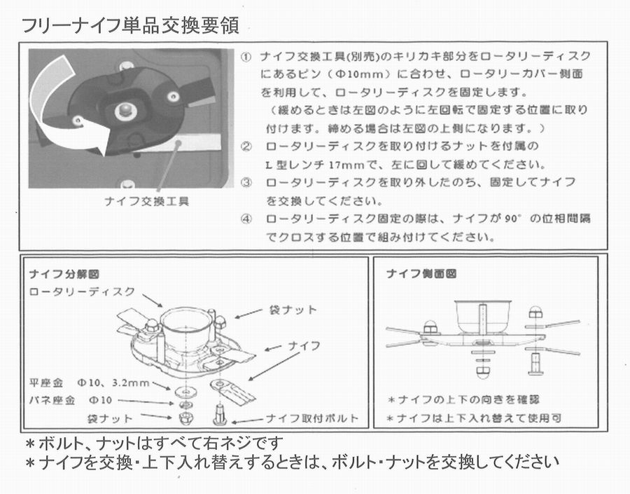 ※初期のパーツから仕様変更となっておりますが使用可能です - セット内容 : フリーナイフ×8枚、袋ナット×6個、ナイフ取付ボルト×4個、座金×2枚、バネ座金×2枚&ロータリーディスクCOMP×2。