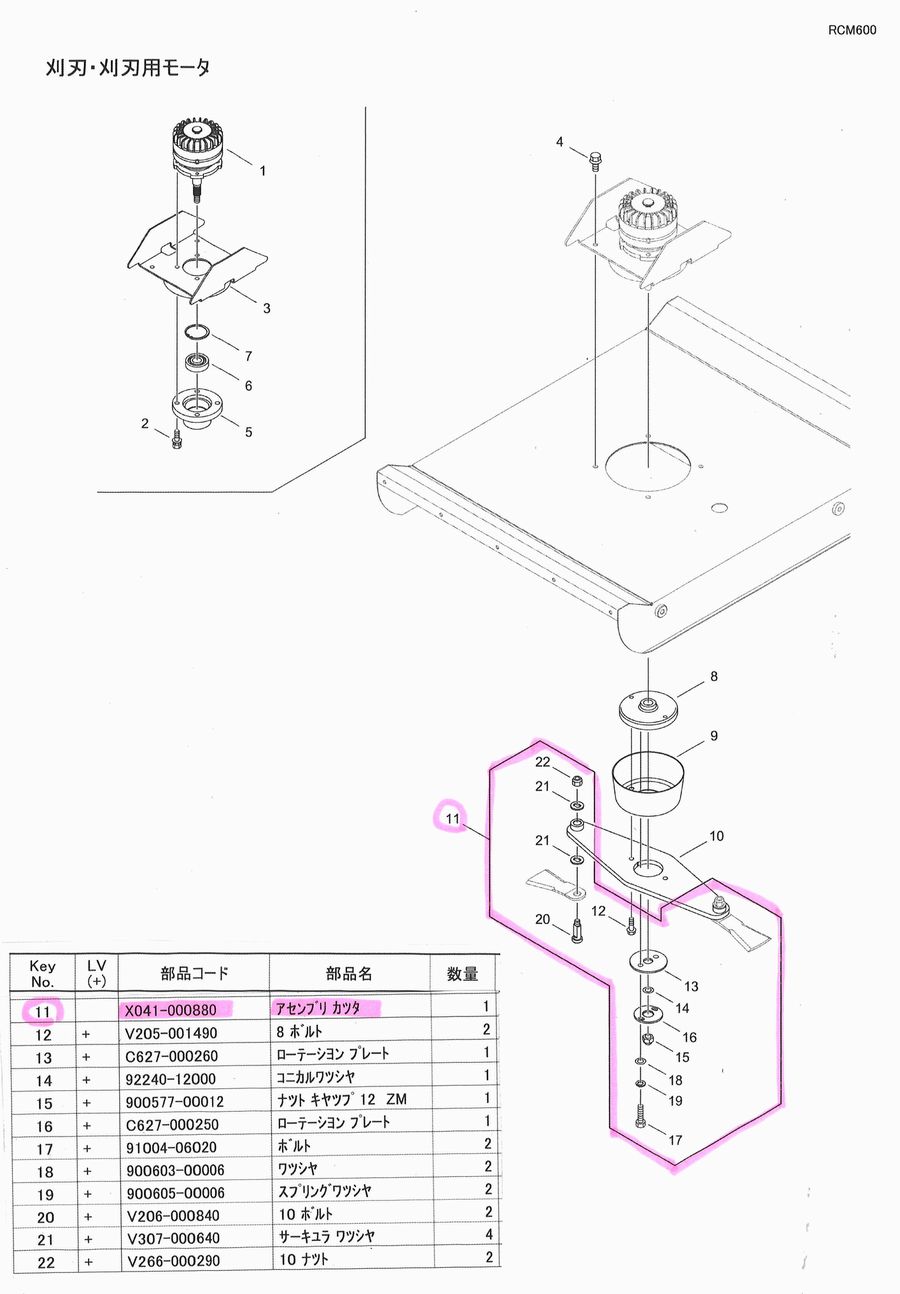 - 適合型式 : 共立のラジコン草刈機、 RCM600、RCM601 に適合します。