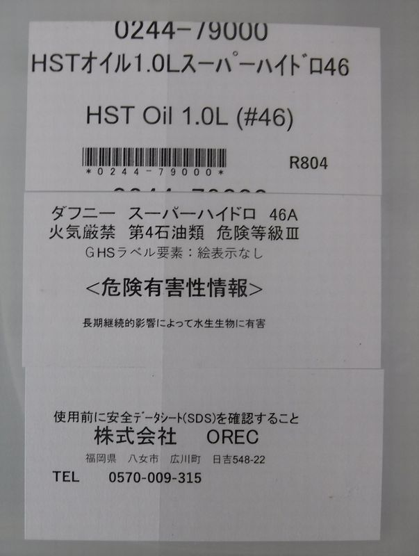 オーレック 乗用草刈機用 HSTオイル 1.0L スーパーハイドロ46 部品番号【0244-79000】